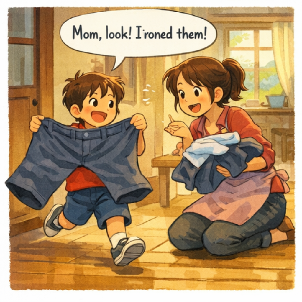 “But next time,” his mother said gently, “let’s fix the iron instead of using the road roller.”